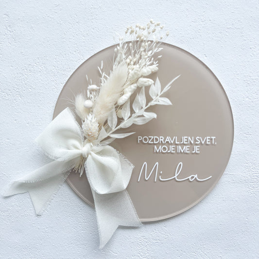 Akrilna oznanitvena plošča s šopkom suhega cvetja