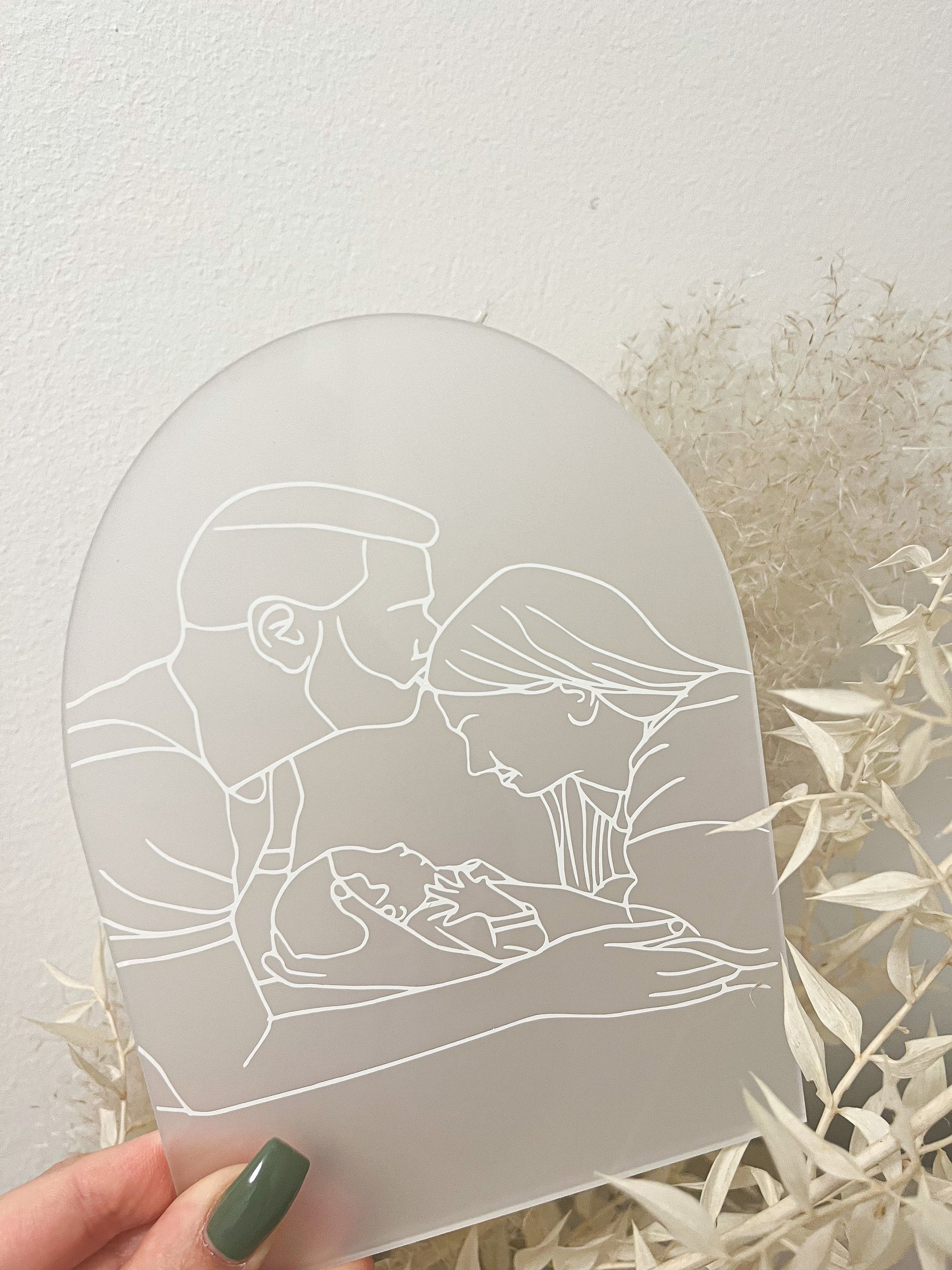 Čudovita spominska akrilna ploščica z ročno narisano ilustracijo vaše najljubše slike.