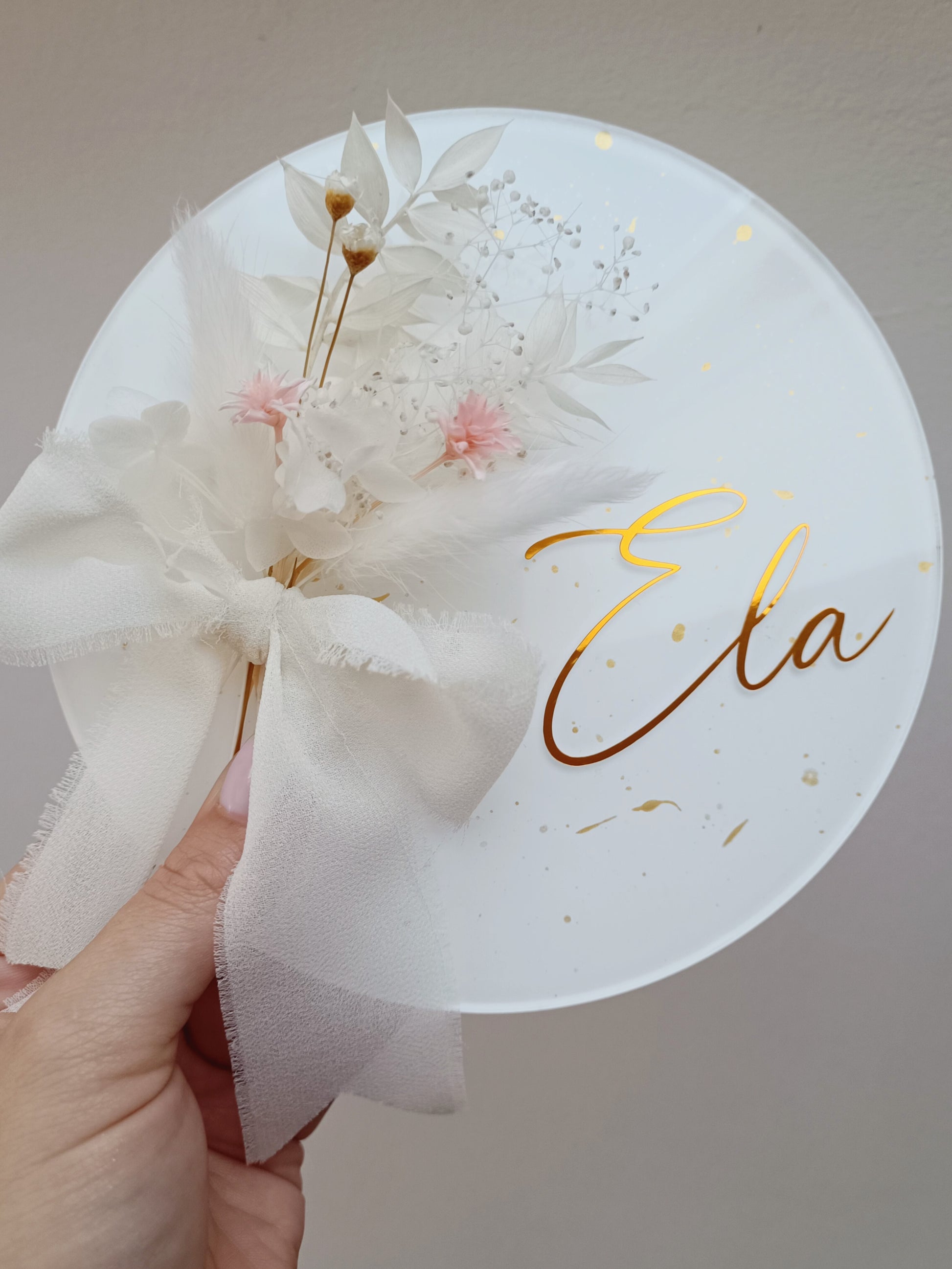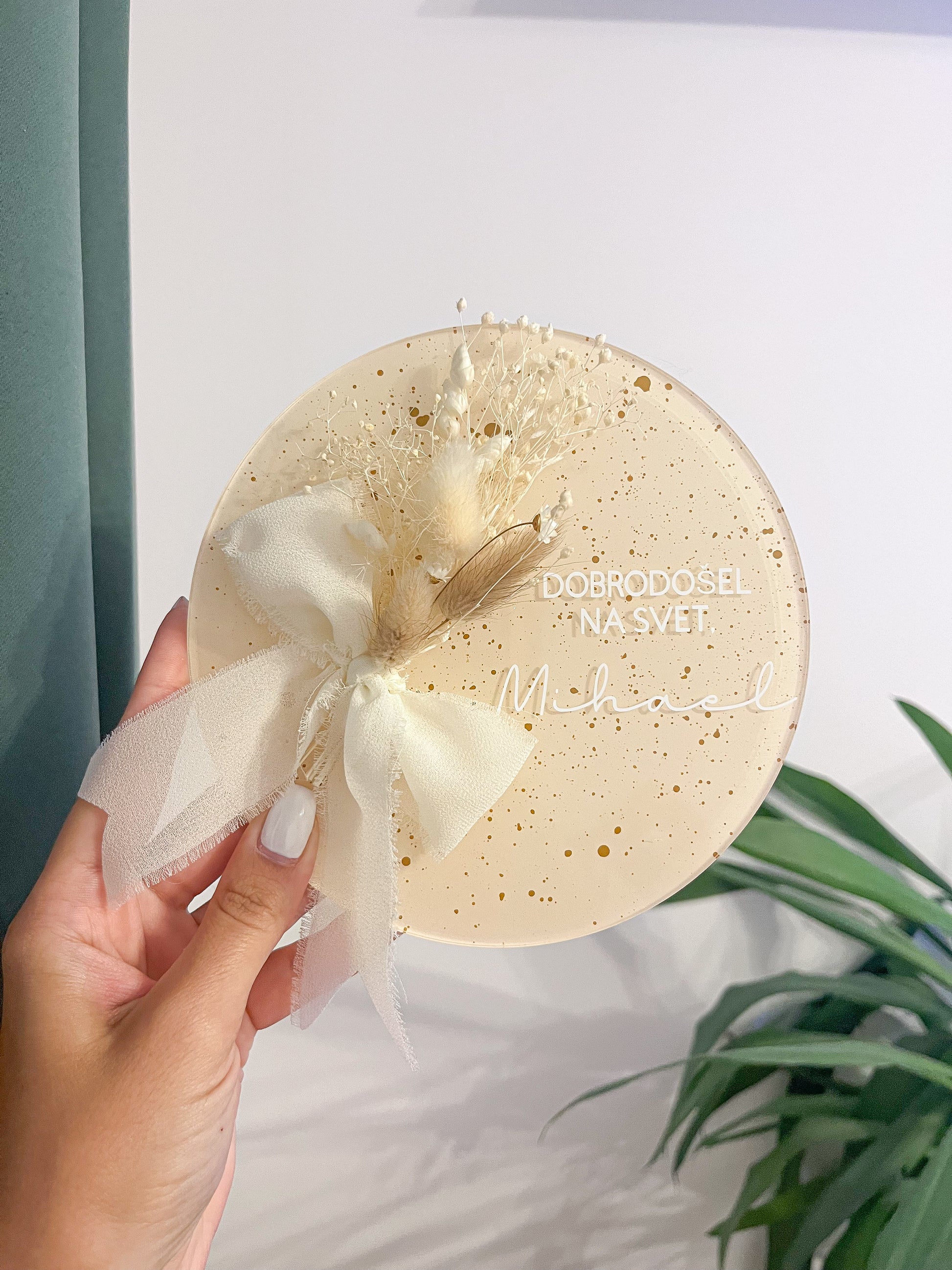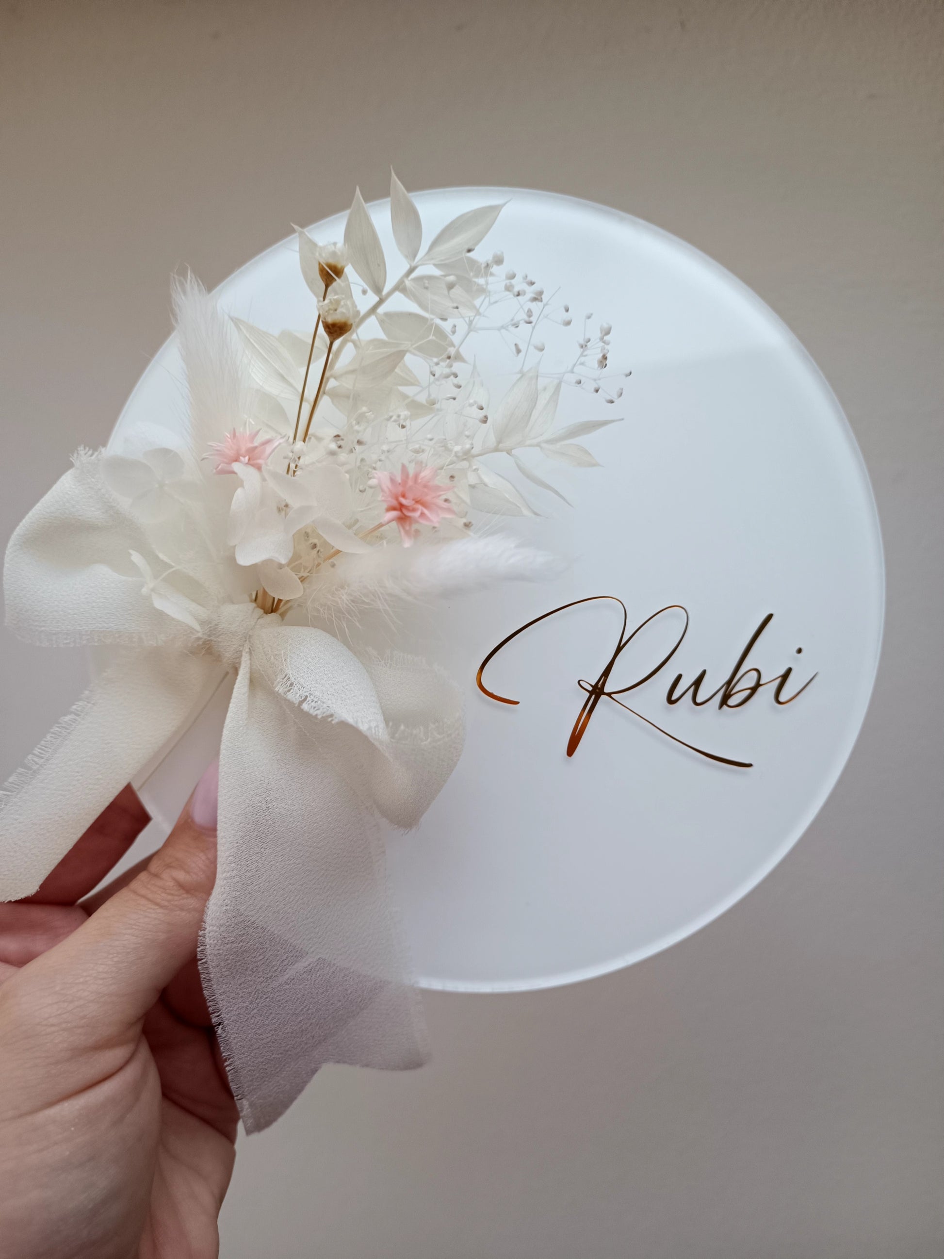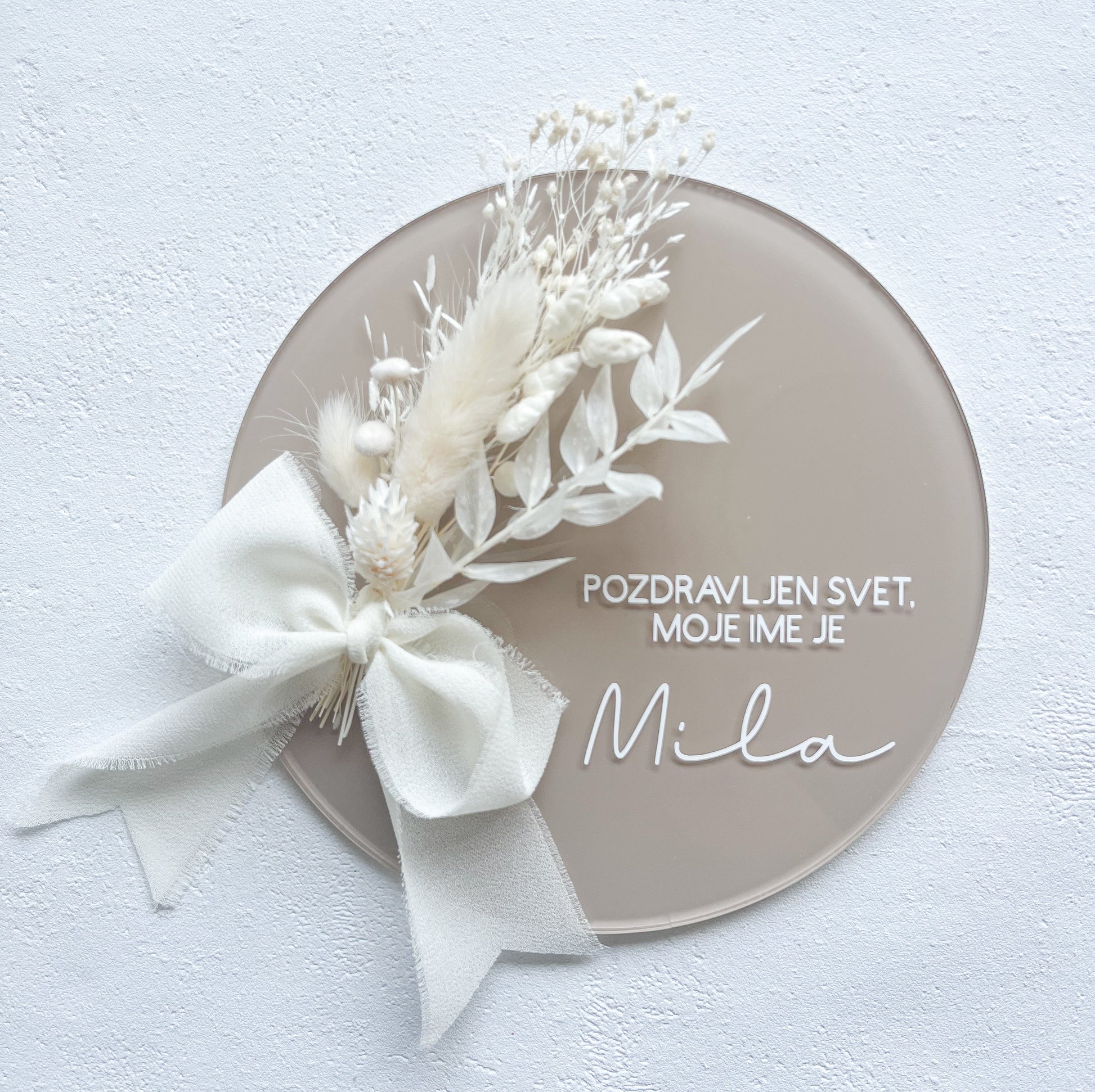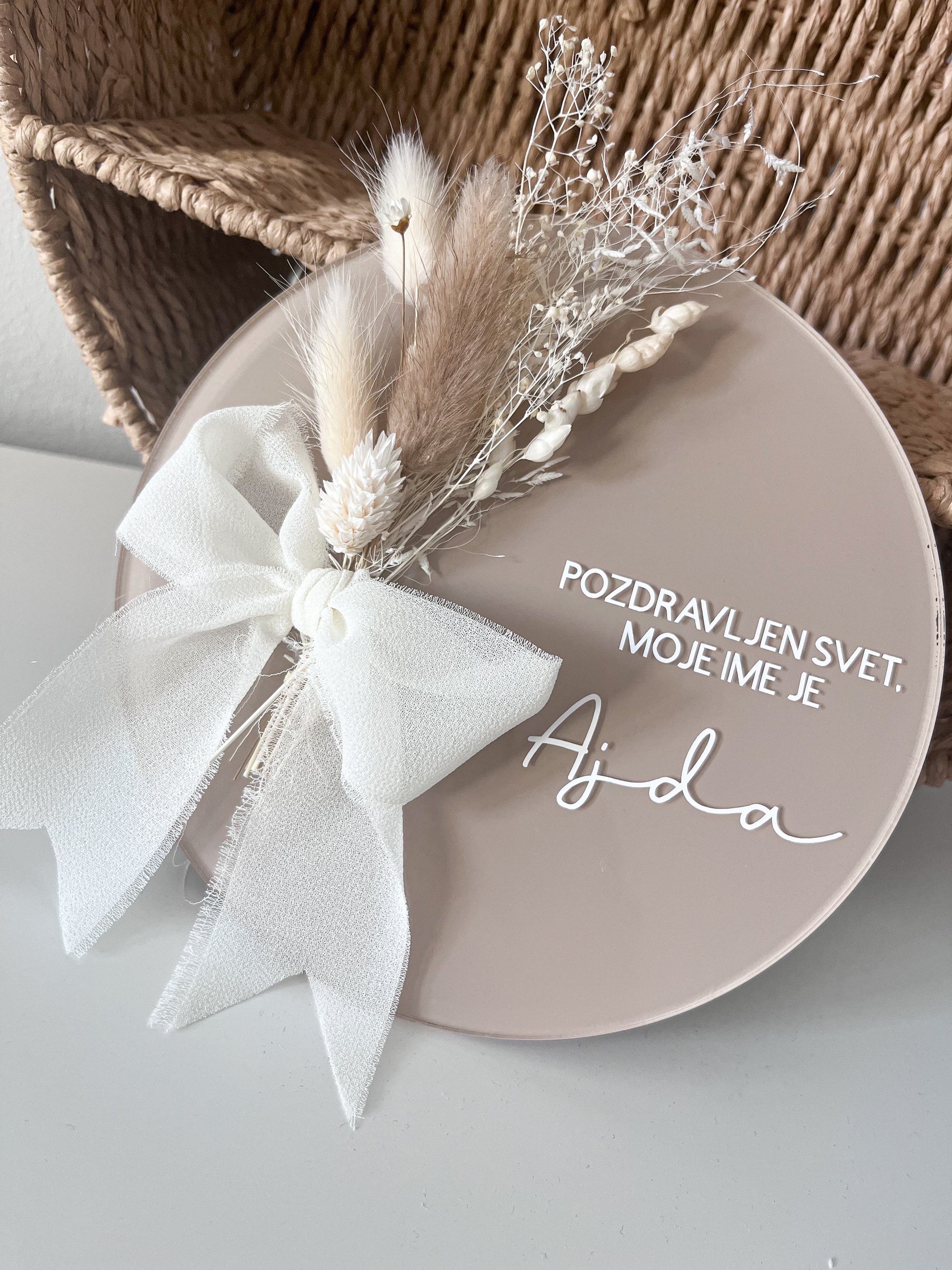 Akrilna oznanitvena plošča s šopkom suhega cvetja