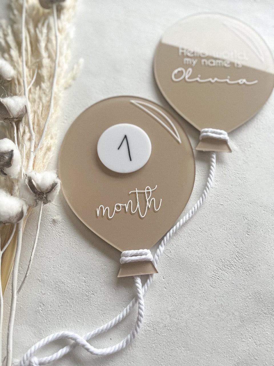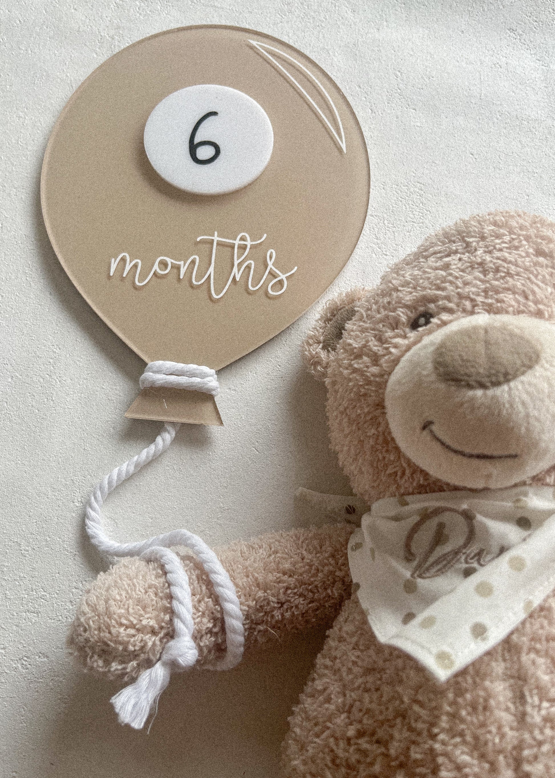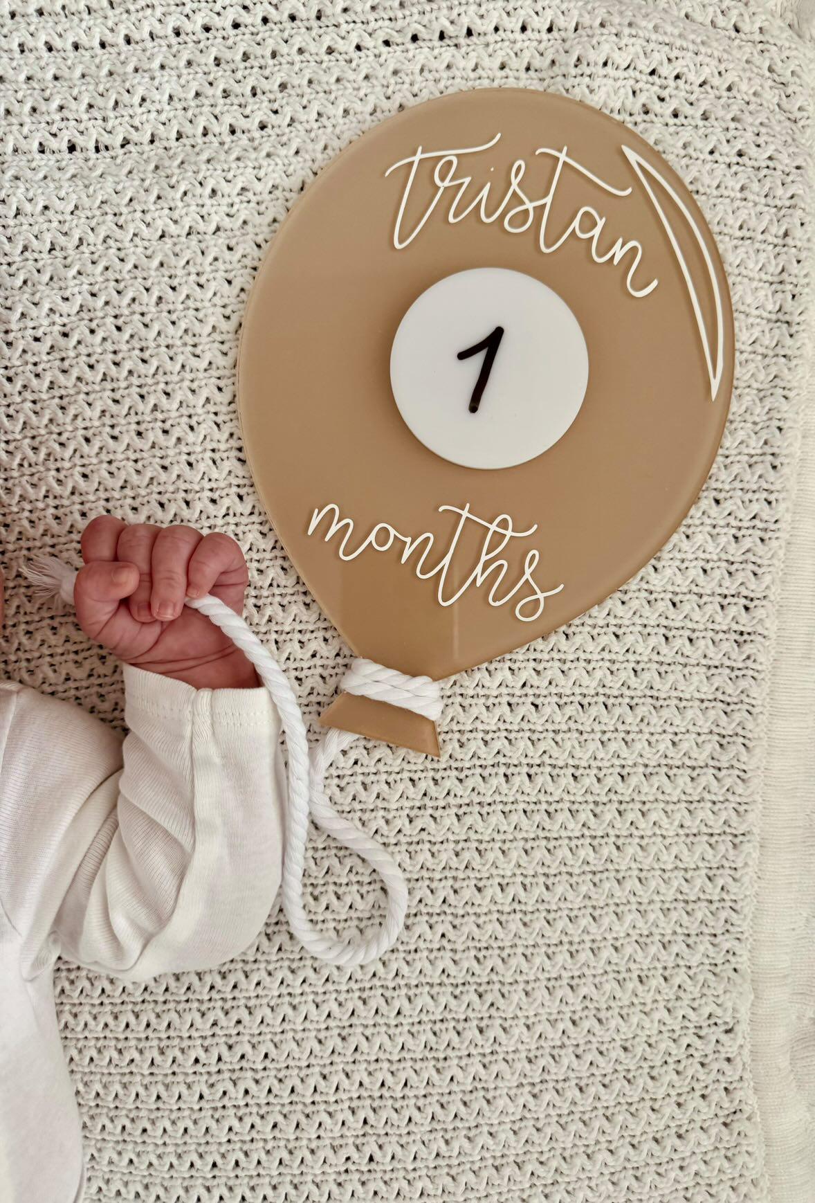 Edinstvena akrilna ploščica v obliki balona za fotografiranje prvih trenutkov Vašega otroka. Z njim ustvarite unikaten, trajen spominek na zgodnje otroške trenutke. Naj bo vsak mejnik poseben in dokumentiran.